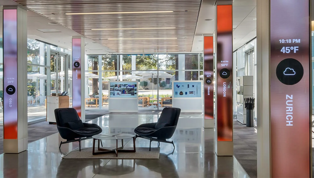 I was fortunate to have the opportunity to work with a talented team of creatives and engineers to create eBay’s digital signage. My role on the project was to perform production duties and motion graphics. The bulk of my assignment was to design the icons for the main screen in the lobby of eBay’s headquarters. I also worked on the icon animations for the live-update weather, and video editing to create a moving backdrop for their conference room screens.